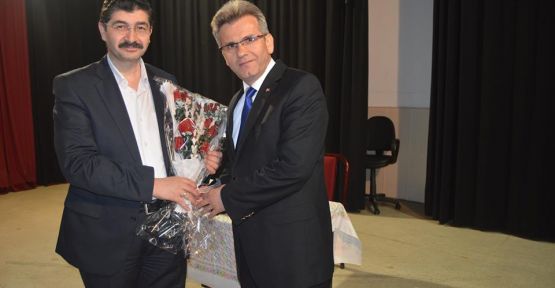 Konferans sonunda Acıpayam Belediye Başkanı Dr.Hulusi ŞEVKAN İlahiyatçı -Yazar Cemil TOKPINAR'a çiçek takdim etti.