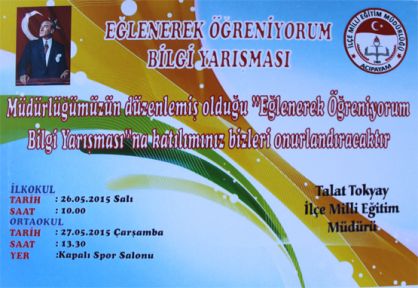 19 İlkokulun yarışacağı bilgi yarışması 26 Mayıs 2015 saat 10:00'da başlayacak.