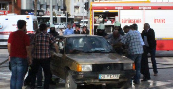 Denizli’de bir kişi, büyükşehir belediyesi önünde aracına mazot dökerek kendisini yakmaya çalıştı.