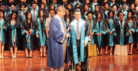 10 yıl önce Pamukkale Üniversitesi (PAÜ) Tıp Fakültesi’ni kazanan Burak Altıok, 4'üncü sınıfa geldiğinde lösemiye yakalandı. Zor geçen günlerin ardından yürüme güçlüğü de çekmeye başlayan genç doktor adayı, eğitimini yarıda bıraktı. Daha sonra bir kez daha tekrarlayan hastalığı yenen Altınok, eğitimini tamamlayarak doktor oldu. PAÜ Tıp Fakültesi'nden mezun olan 85 öğrenci arasında yer alan genç doktor, tekerlekli sandalyesiyle törene katılarak diplomasını aldı. Zor günleri geride bıraktığını belirten Burak Altıok, "Lösemiyi yendikten sonra hayata tutunmak zorundaydım. Eğitime ara verdikten sonra tedavimi oldum ve şu anda da mezun oldum. Gördüğüm fizik tedavinin ardından yürümeye de başlayacağım inşallah" dedi.