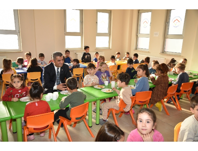 İl Milli Eğitim Müdürü Süleyman Ekici, Azime-Galip Demir Anaokulunu ziyaret ederek ücretsiz yemek çerçevesinde öğrencilere verilen kahvaltıda öğretmen ve öğrencilerle bir araya geldi.
