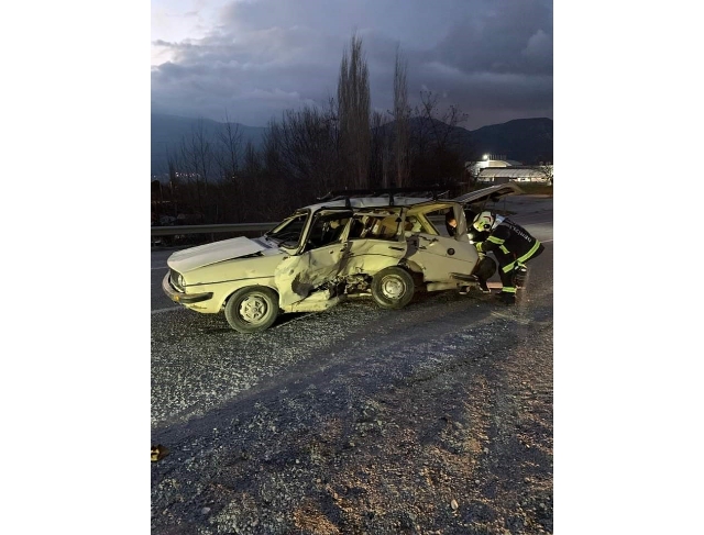 Denizli’de iki otomobilin çarpıştığı kazada araçta sıkışan iki yaralı itfaiye ekipleri tarafından kurtarıldı.