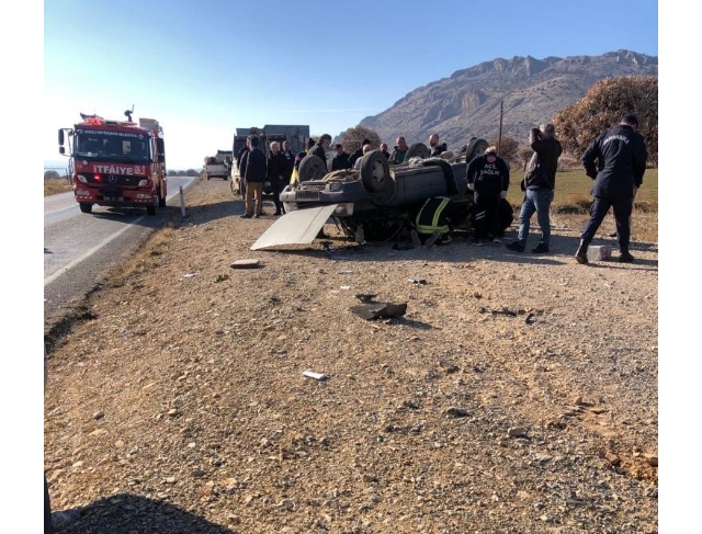Denizli’de lastiğin patlaması sonucu kontrolden çıkıp takla atan otomobildeki karı koca yaralı olarak hastaneye kaldırıldı.