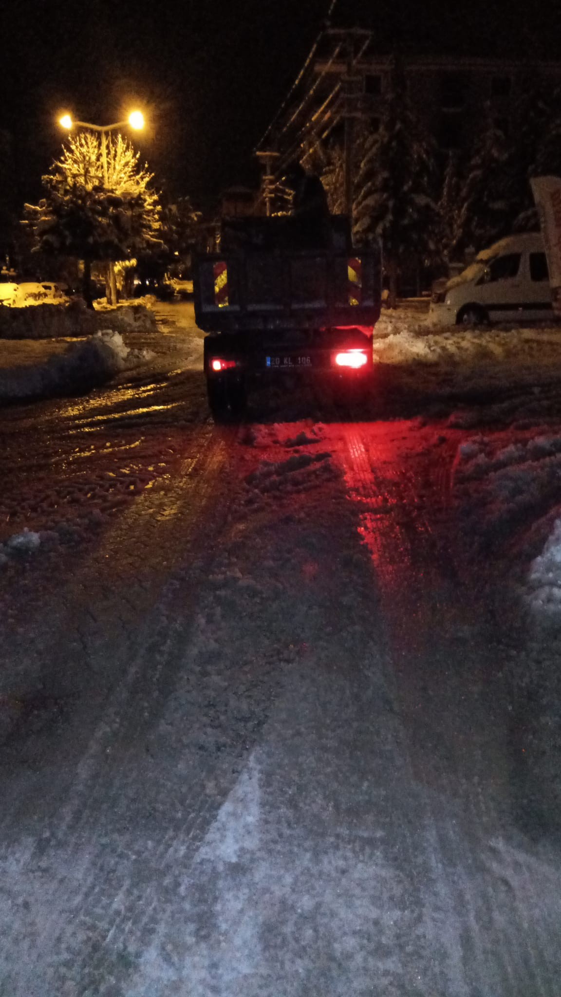 Acıpayam Belediyesi dün akşam saatlerinden itibaren ilçe genelinde etkili olan kar yağışıyla birlikte kar küreme ve tuzlama çalışmalarına gece boyunca devam etti.